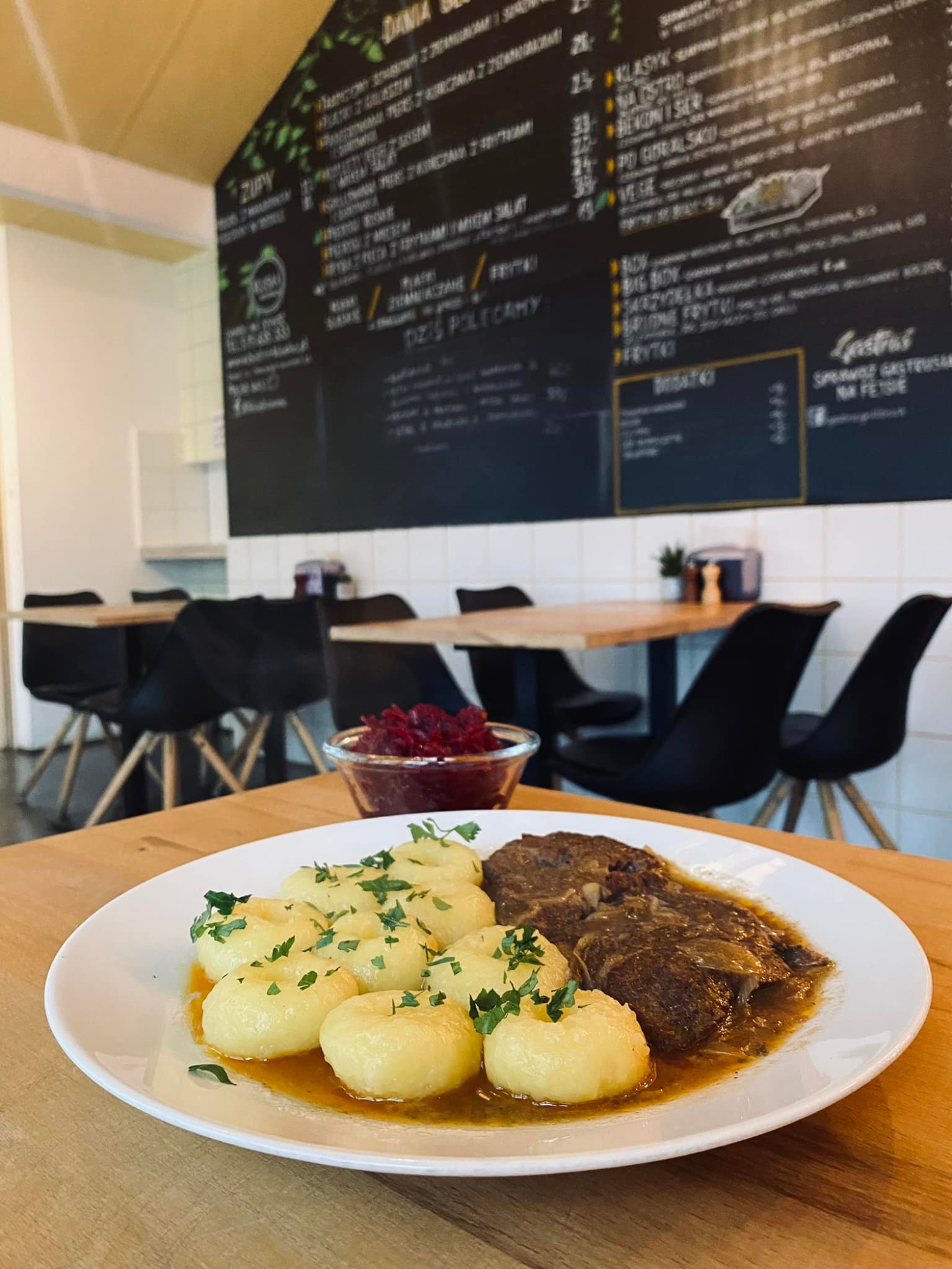 Zamów nasze pyszne dania online i ciesz się smakiem świeżych klusek, soczystego mięsa i aromatycznych sosów prosto z naszej kuchni, gdzie wszystko robimy z sercem 💛